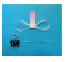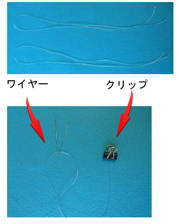 修理キットにある1mの紐を2回折り、はさみで切ります。